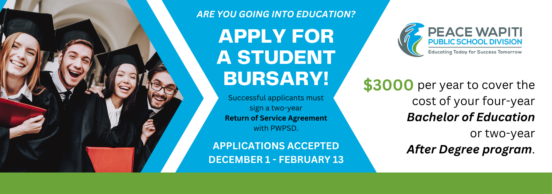Peace Wapiti Public School Division (PWPSD) has created a bursary program to assist individuals living within the PWPSD boundaries to attain their Bachelor of Education (BEd) degree.